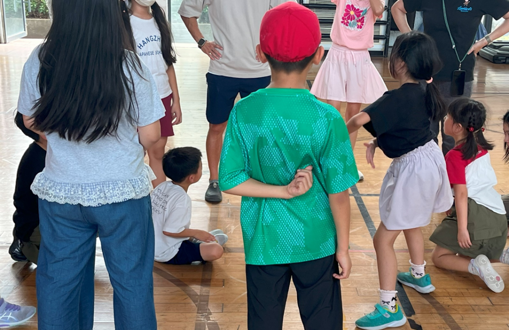 本校では、月に一回、杭州っ子班で遊ぶ機会が設けられています。杭州っ子班は、幼稚園から9年生までのメンバーで構成される縦割り班です。リーダーは5・6年生。みんなが楽しめるような、また、仲が良くなるような内容を企画し、連絡調整をしながら進めています。この前までお世話される側だった子どもたちが、リーダーとして準備をしたり、指示を出したり、困っている子どもに寄り添ったりする姿は、とても頼もしいものです。今回も汗いっぱい、喜びいっぱいの杭州っ子遊びの時間でした。
