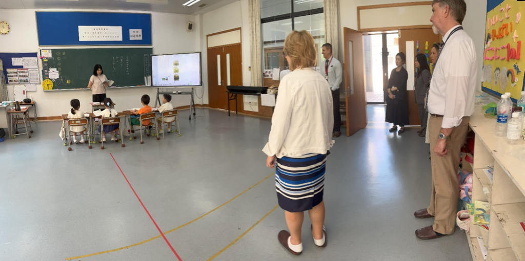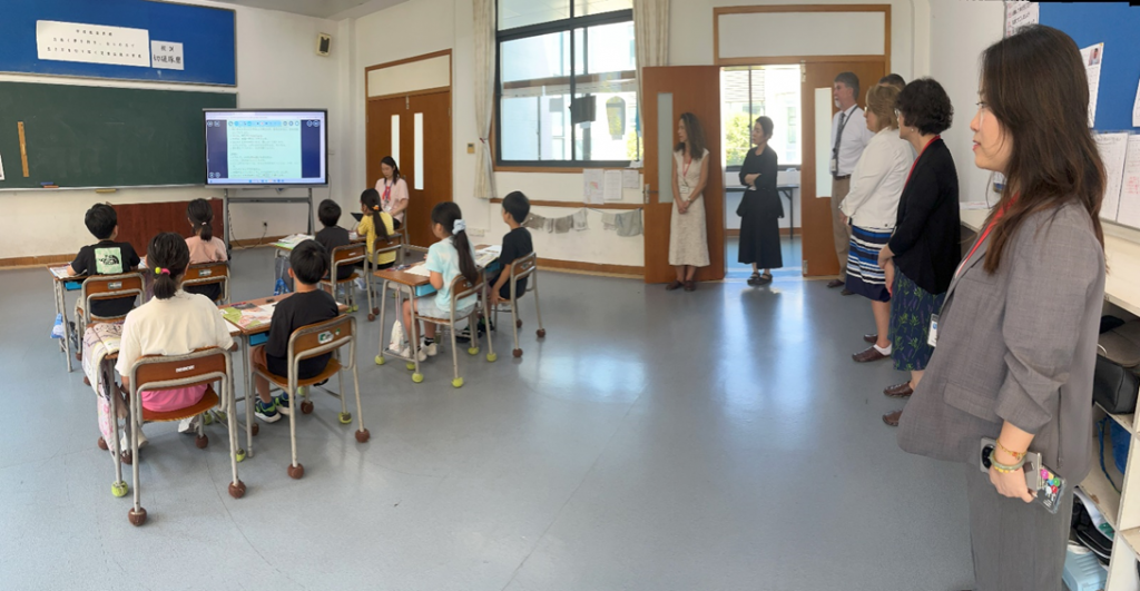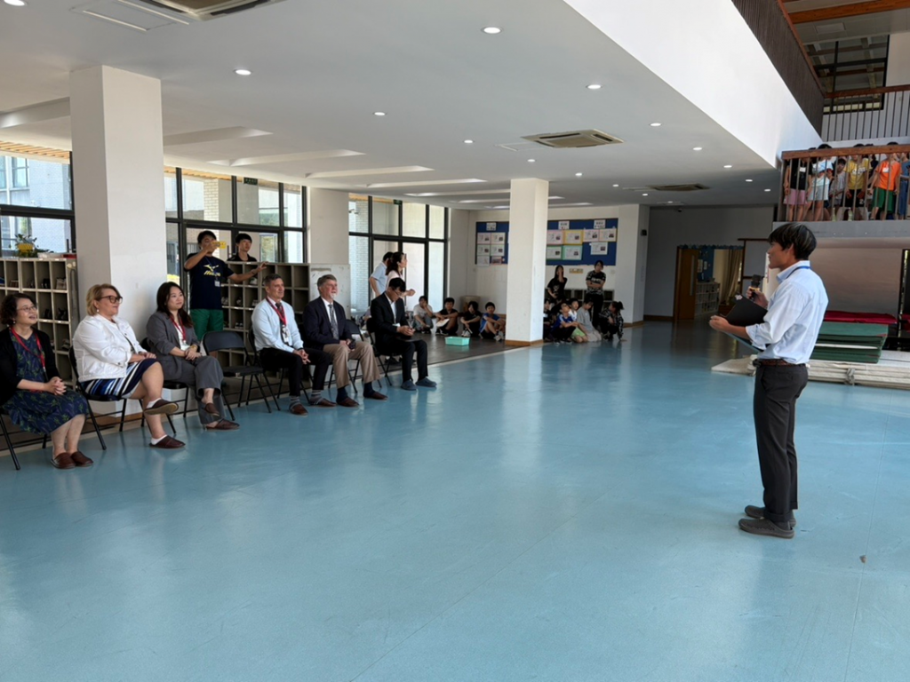 杭州のインターナショナルスクール6校から校長先生が本校に集まり、ミーティングが開催されました。年2回ある定例会の一つが本校で開催されるのは、初めてです。ということは、インターの校長先生方が、日本の学校を訪問されるのもおそらく初めてと思われます。よさこいソーランや南中ソーランの踊り、英語による学校紹介や校歌斉唱、日常授業の様子を見ていただき、たくさんの賞賛をいただきました。“Thank you so much for your hospitality and arranging such a wonderful visit.Your kids are so lovely.”これは、ある校長先生の感想です。本校の子どもたちの魅力を分かっていただけたことは、とても嬉しいことです。さらに、子どもたちの英語を活用する意欲が高まり、それを実践しようと目を輝やかせて挑戦する子どもたちの姿が見られたことは、大きな大きな収穫です。本当によかったです。