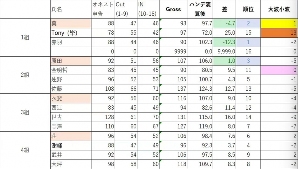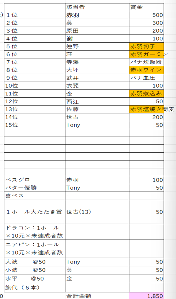 第29回ゴルフコンペの優勝者は赤羽さん。グロス90。おめでとうございます!