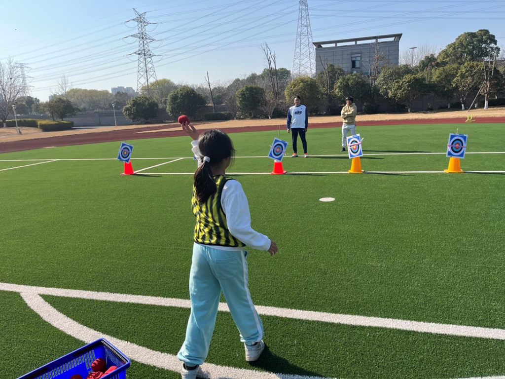 1月の運動の時間(杭州タイム金曜メニュー)は、保体委員会が考えた「2026障害物リレー」が行われました。運動場をフル活用したリレーです。鉄棒で前回りを行い、登り棒でぶら下がり、ラダートレーニング、長縄跳びをし、まと当て、ミニハードルに挑戦します。寒い日が続く中でしたが、その日はよい天気に恵まれた楽しいひと時を過ごしました。体力もずいぶんついてきています。