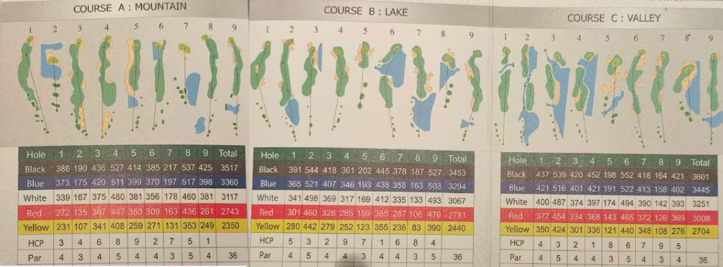 パタヤゴルフリゾートのコースレイアウトは以下の通りです。全部で36ホールあります。