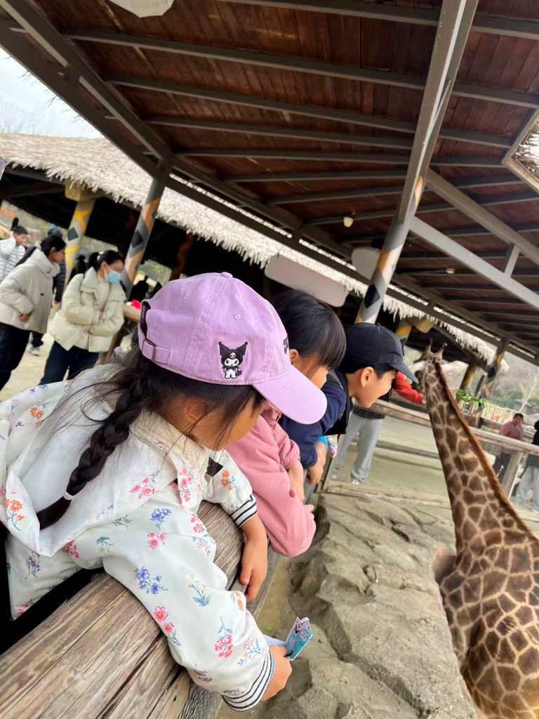 2月13日お別れ遠足を実施しました。行先は杭州野生動物世界です。今や日本ではパンダを見ることはできませんが、こちら杭州ならではのよさとして少ないお客さんの中でパンダをいつまでも見ることができました。出会える動物の量と種類、また、お客さんが来たら餌を与えて活動の様子を見せる演出、バスに乗って近くまで行って野生の様子が観覧できる点、どれをとっても大迫力の動物園でした。また、杭州っ子班での最後の思い出作りのため、5・6年生が、リーダーとして頑張っていました。みんなの意見を聞きながら時間の許す限り見たい場所を回るのですが、道を間違えないよう先頭を切って進んでいきます。低学年に配慮しながら班をまとめる様子は、素晴らしく、成長を実感いたしました。様々な喜びがいたるところで感じられました。