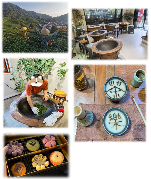 お茶摘み、お茶炒め、品茶、茶文化解説、点茶/抹茶、ドローンによる空撮