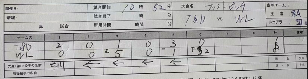 試合は最終回まで同点のもつれる展開でしたが、投げては3人のピッチャーで継投、打っては大坪、田代の活躍で8-6で辛くも勝利。1勝1敗の五分で交流戦を終えました。