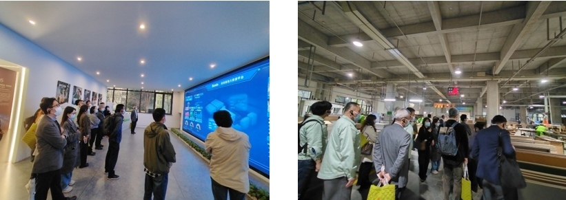 第二部は、钱塘区にある钱塘智造基地に移動し、工場見学をさせて頂きました。工場では素材の加工から塗装、組立、検査に至る各工程をご案内して頂き、全自動の加工機や塗装ラインなど見応えのある工程を見学させて頂きました。また本革を使った製品や一品一品丁寧にソファ等の組立を行うラインは職人技が光る工程でした。